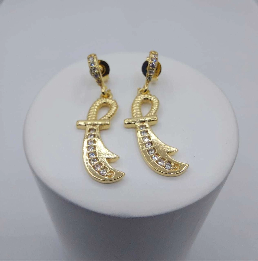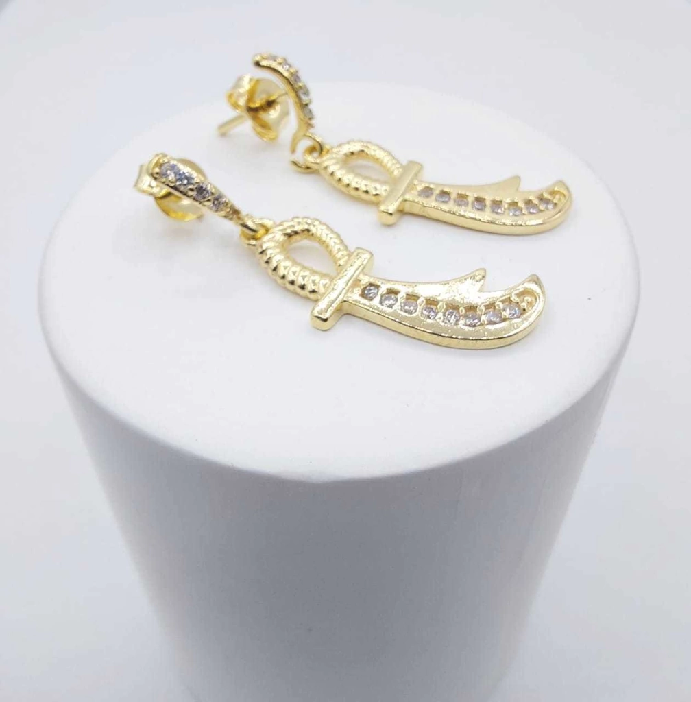 Descrição: Brinco espada de Iansã cavejado com microzircônia. Disponível em banho de Ouro 18k ou Prata 925.