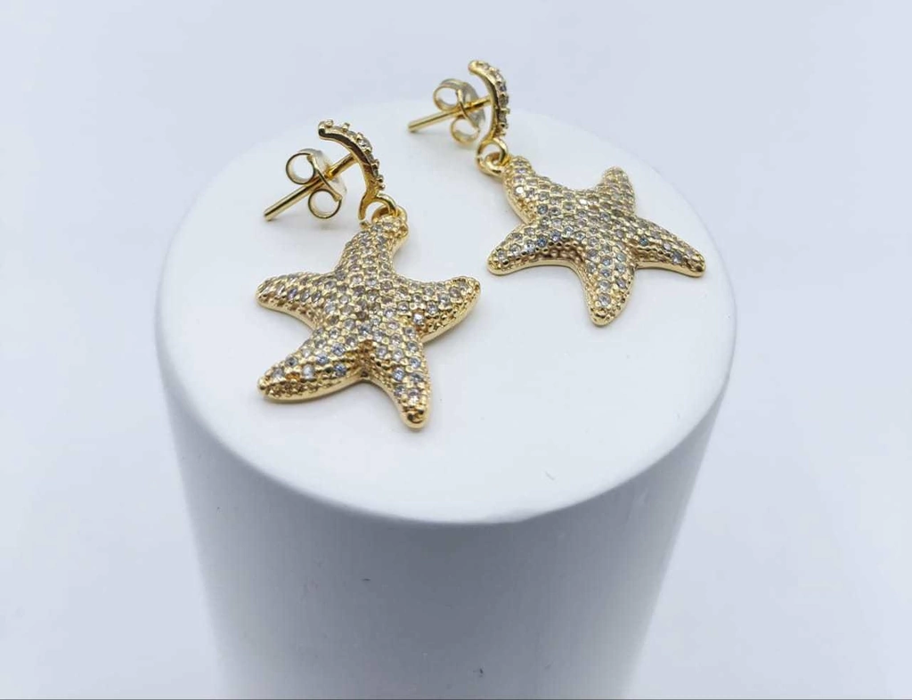 Descrição: Brinco estrela do mar cavejado com microzircônia. Disponível em banho de Ouro 18k ou Prata 925.