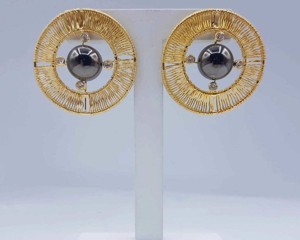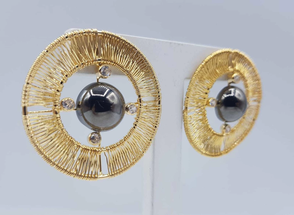 Descrição: Brinco Luxury Argola com circulo, com micro zircônia, disponível em banho de Ouro 18k com detalhes em Ródio Negro.