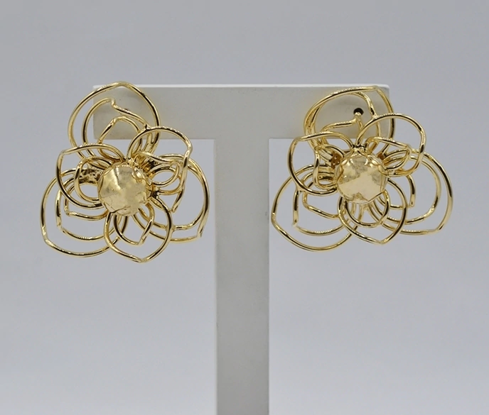 Descrição: Brinco Luxury Flor vazada, disponível em banho de Ouro 18k.