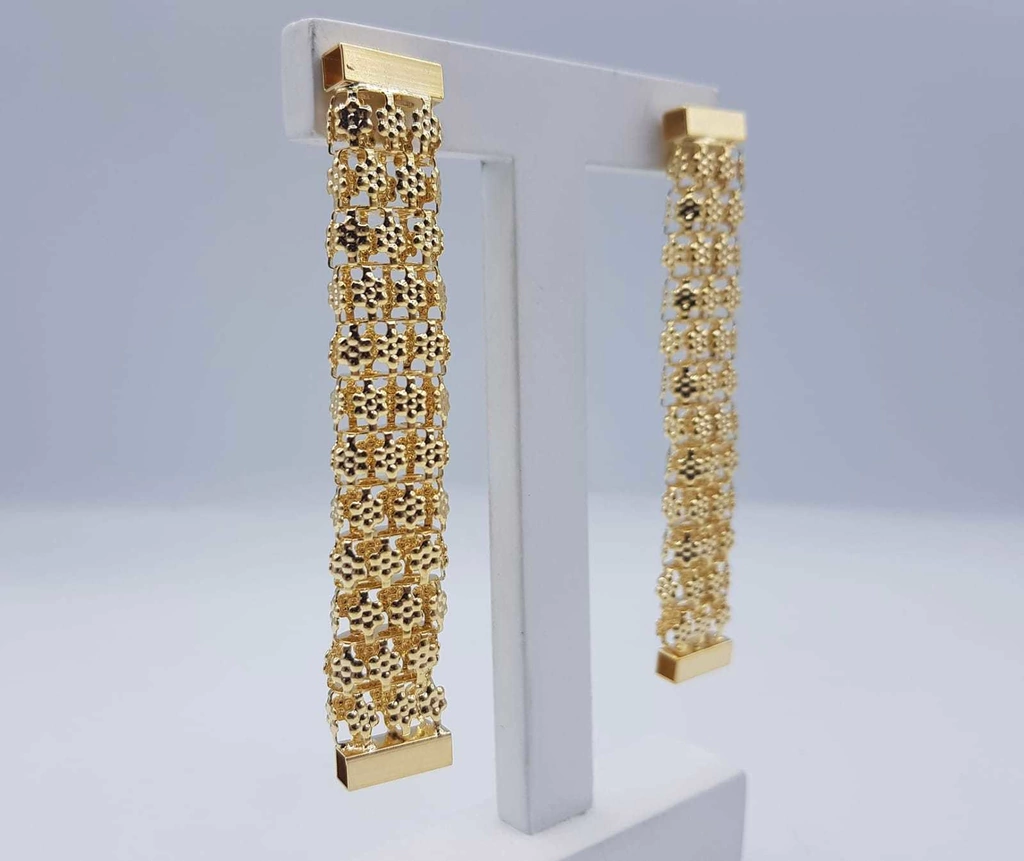Descrição: Brinco Luxury Ondulado vertical, disponível em banho de Ouro 18k.