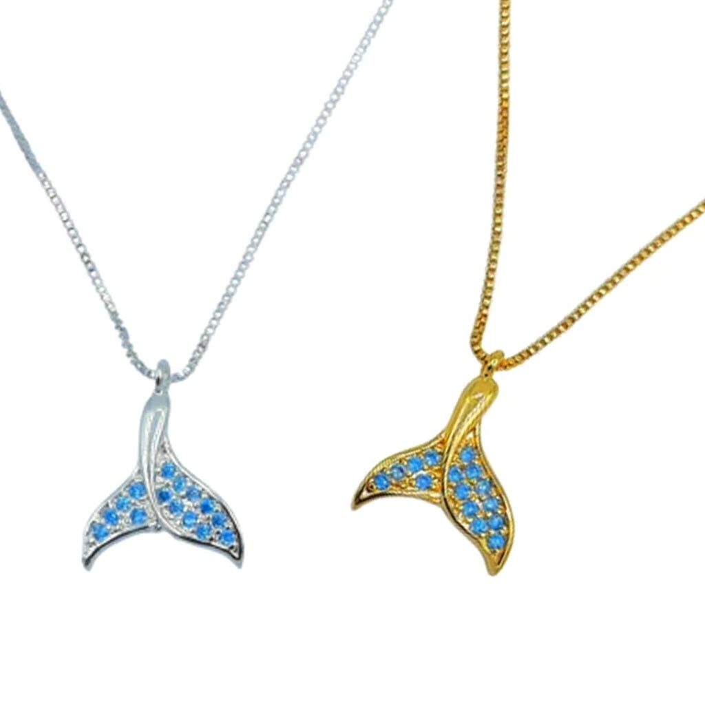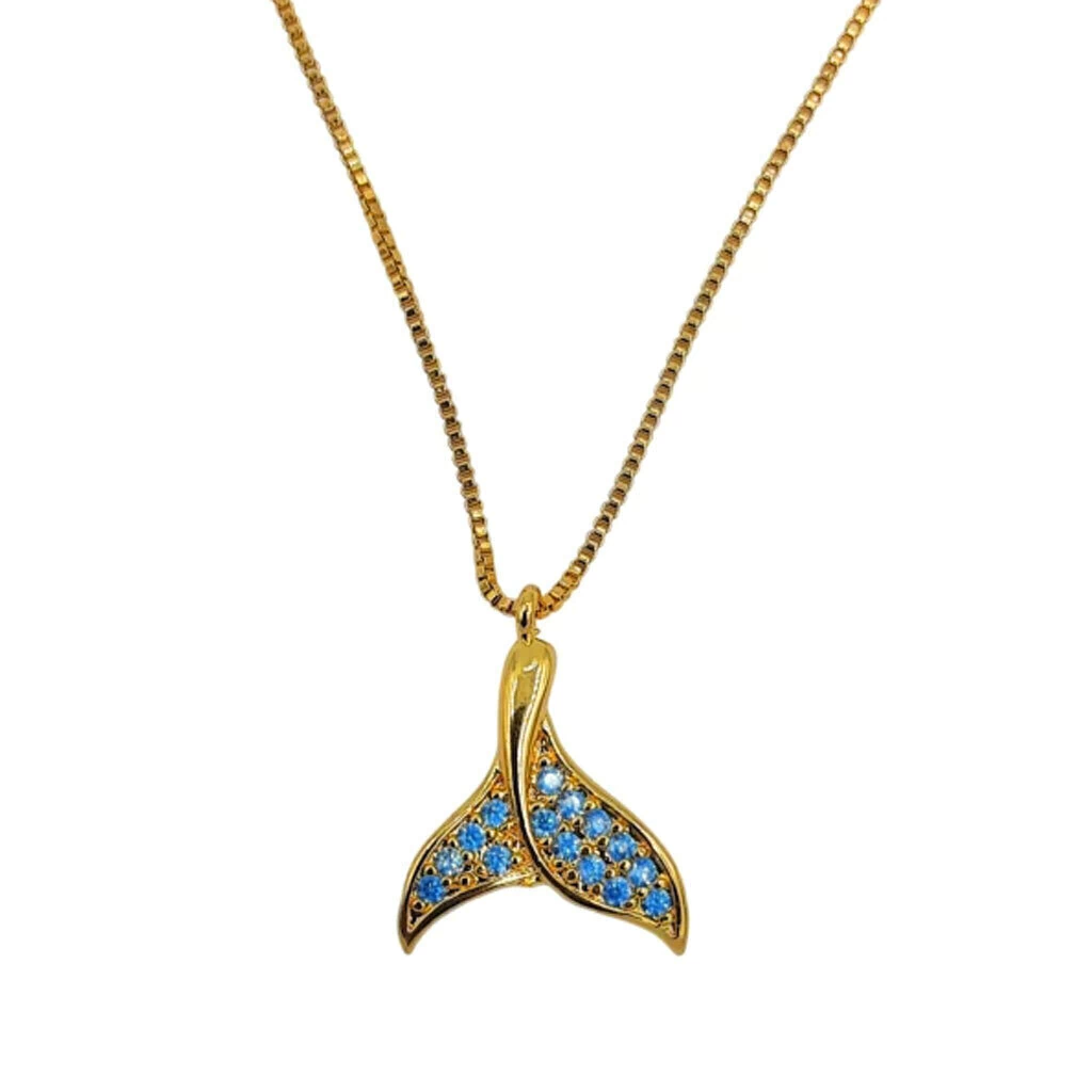 Descrição: Colar cauda de sereia cravejado com micro zircônias na cor azul. acompanha corrente veneziana de 45cm Disponível em banho de Ouro 18K e Prata 925.