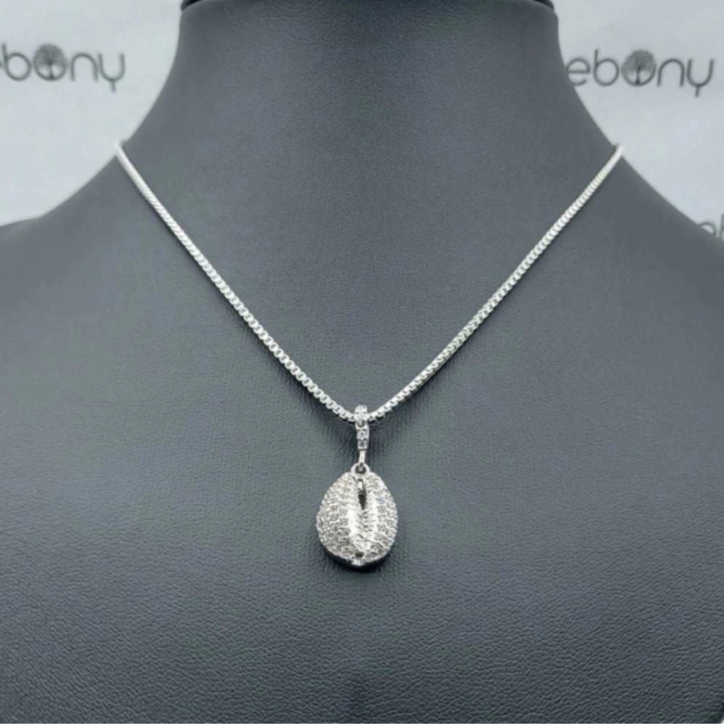 Conjunto Pingente Búzio Cravejada com Zirconia.
