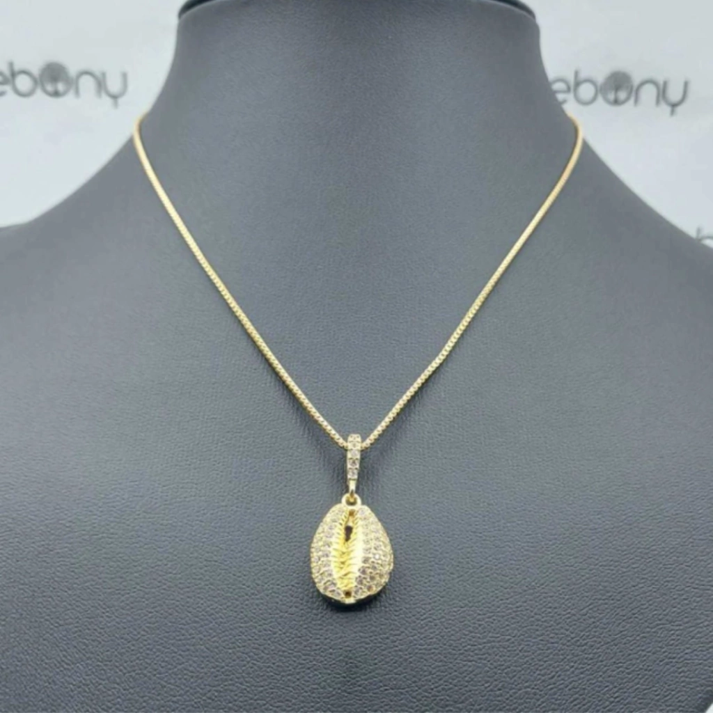 CONJUNTO PINGENTE BÚZIO + CORRENTE BANHADA