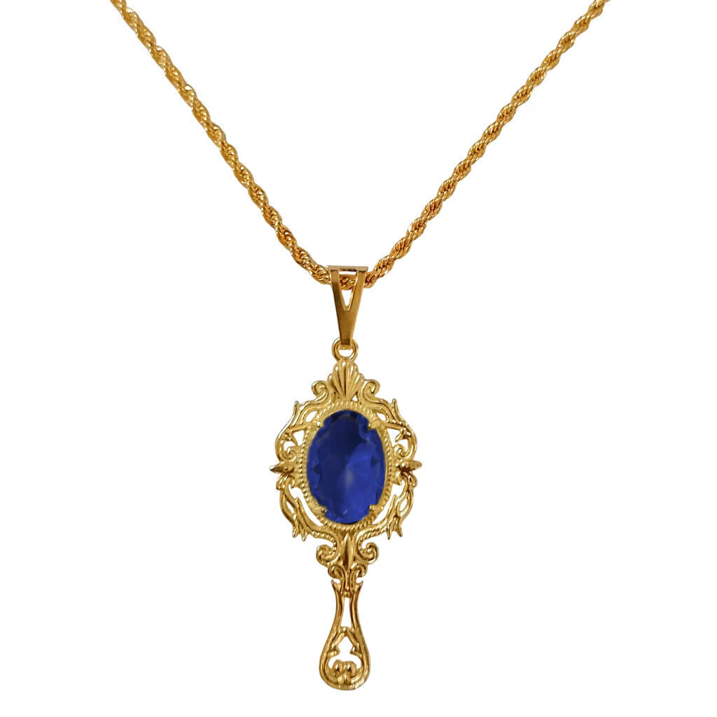 Descrição: Pingente Espelho de Iemanjá azul marinho + Corrente Cordão Baiano de 40cm extensor. Disponível em banho de Ouro 18k e Prata 925.