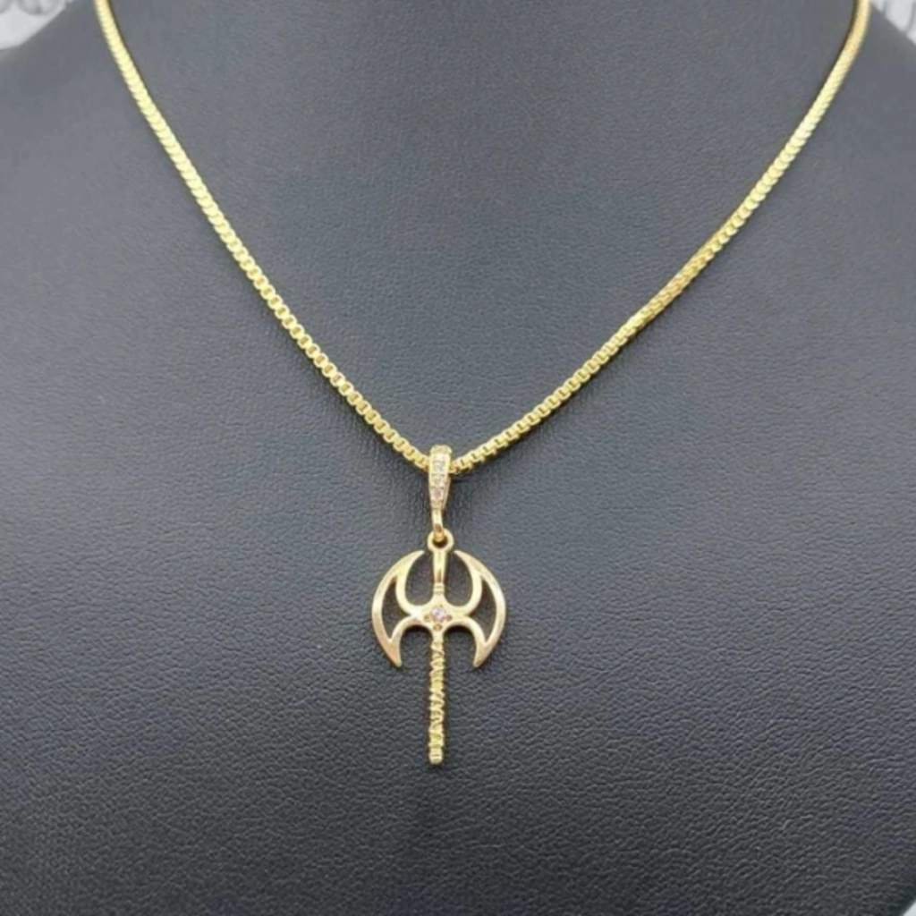 CONJUNTO PINGENTE MACHADO DE XANGÔ + CORRENTE BANHADA