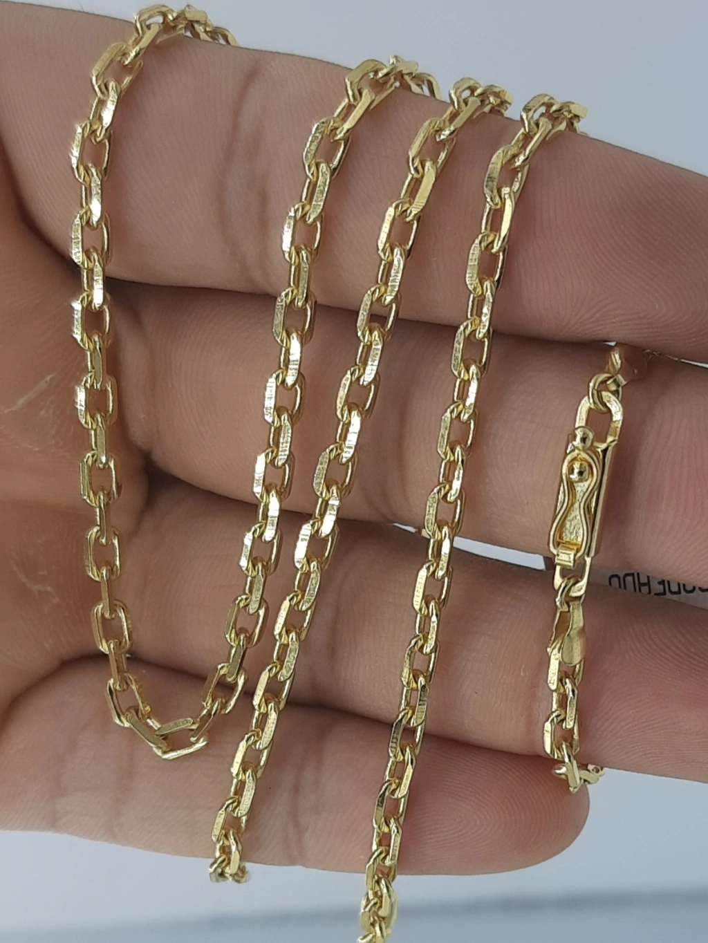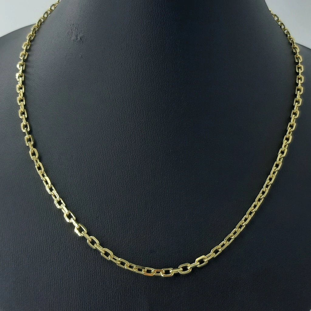 Descrição: Corrente Cadeado de 70cm, fecho canhão. Disponível em banho de Ouro 18k.
