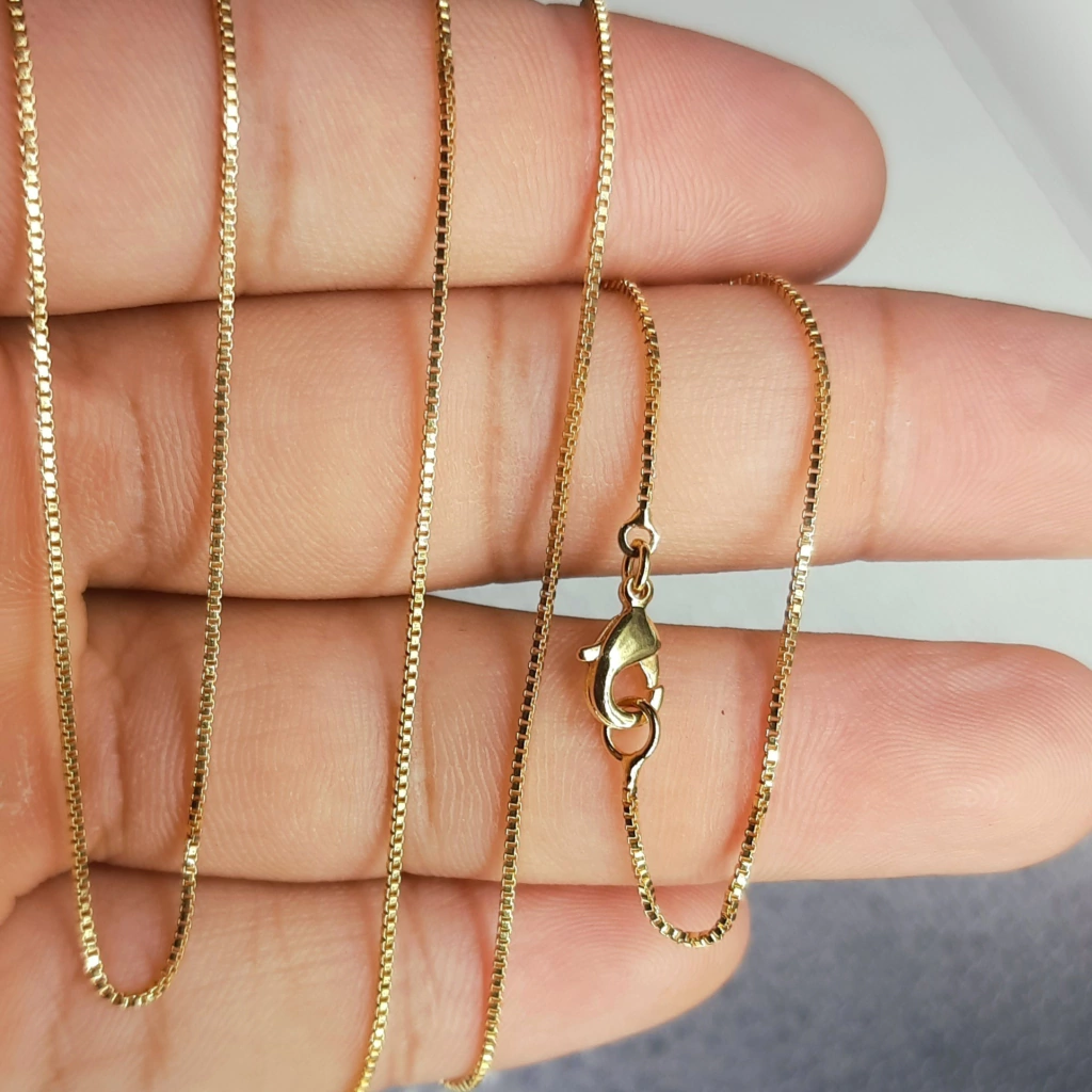 Descrição: Corrente Veneziana de 60cm. Disponível em banho de Ouro 18k ou a Prata 925.