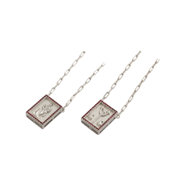 Descrição: Escapulário Caixa Orixa Exu cravejado com micro zircônias na cor vermelho. Disponivel em banho de Rhodium.