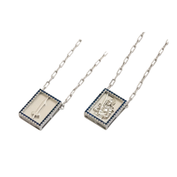 Descrição: Escapulário Caixa Orixa Ogum cravejado com micro zircônias na cor azul. Disponivel em banho de Rhodium.