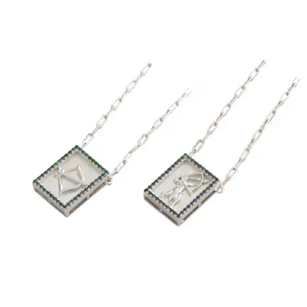Descrição: Escapulário Caixa Orixa Oxóssi cravejado com micro zircônias cor verde. Disponivel em banho de Ouro 18k e Prata 925.