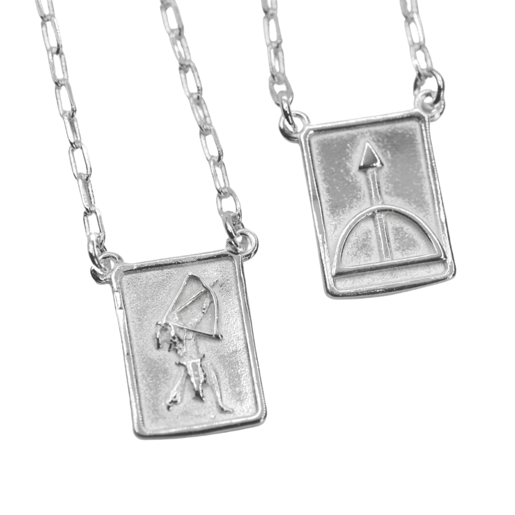 Descrição: Escapulário Placa Oxóssi. Disponivel em banho de Ouro 18k ou a Prata.
