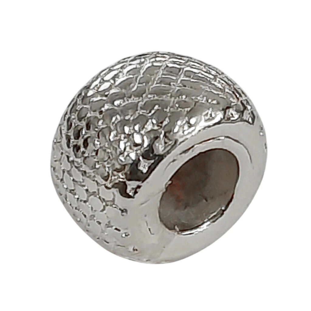 Descrição: Espaçador redondo com escamas para pulseira. Disponível em banho de ouro 18k e prata 925.