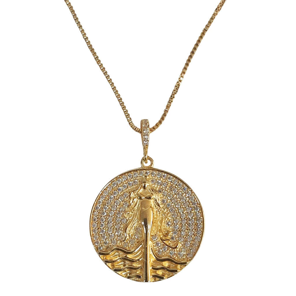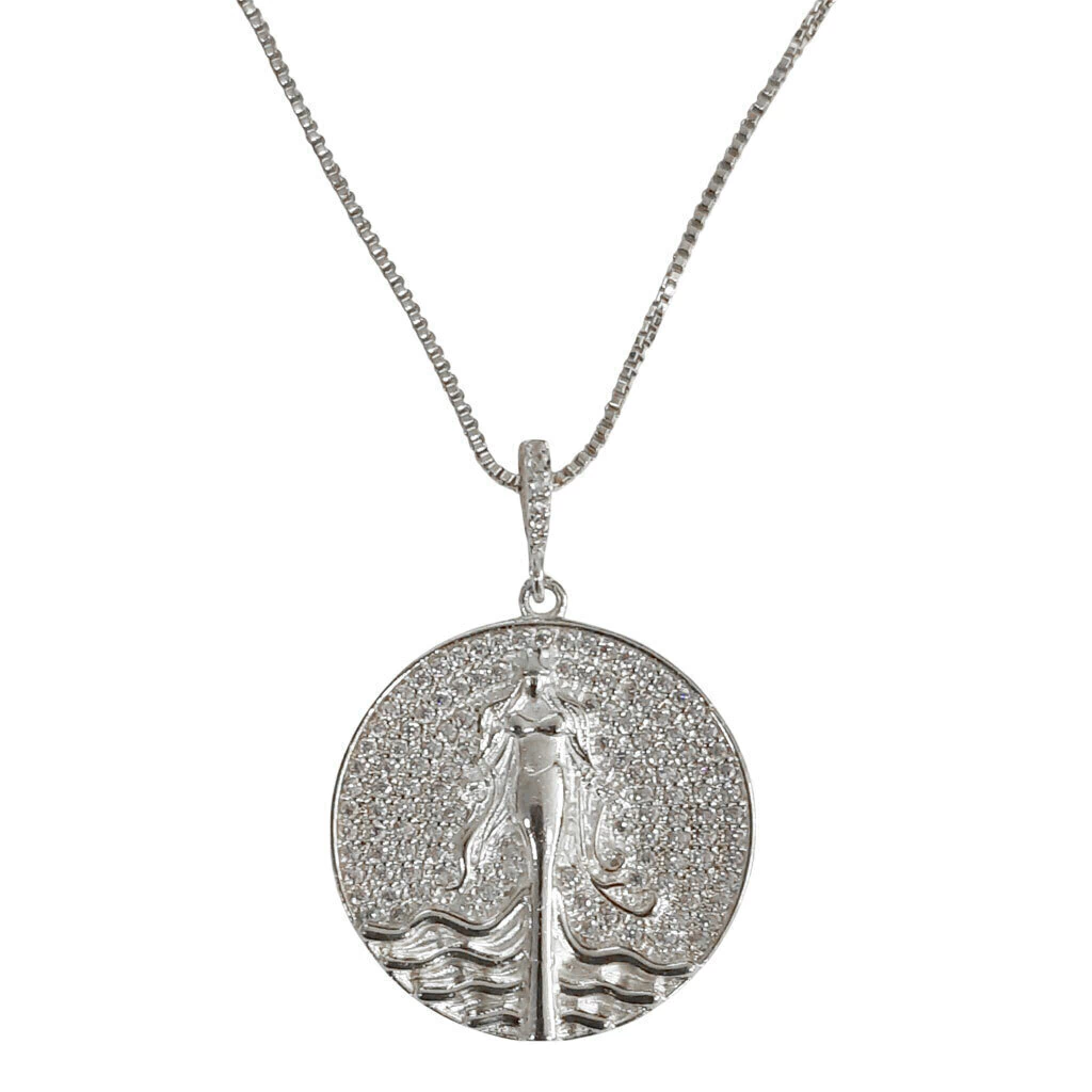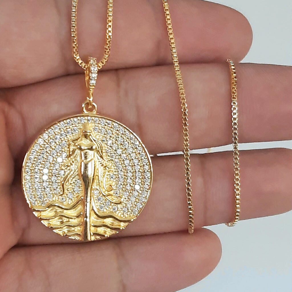 Descrição: Pingente Mandala Média Orixá Iemanjá cravejada com micro zircônias cristais + Corrente veneziana de 40/45cm com extensor. Disponível em banho de Ouro 18k e Prata 925.
