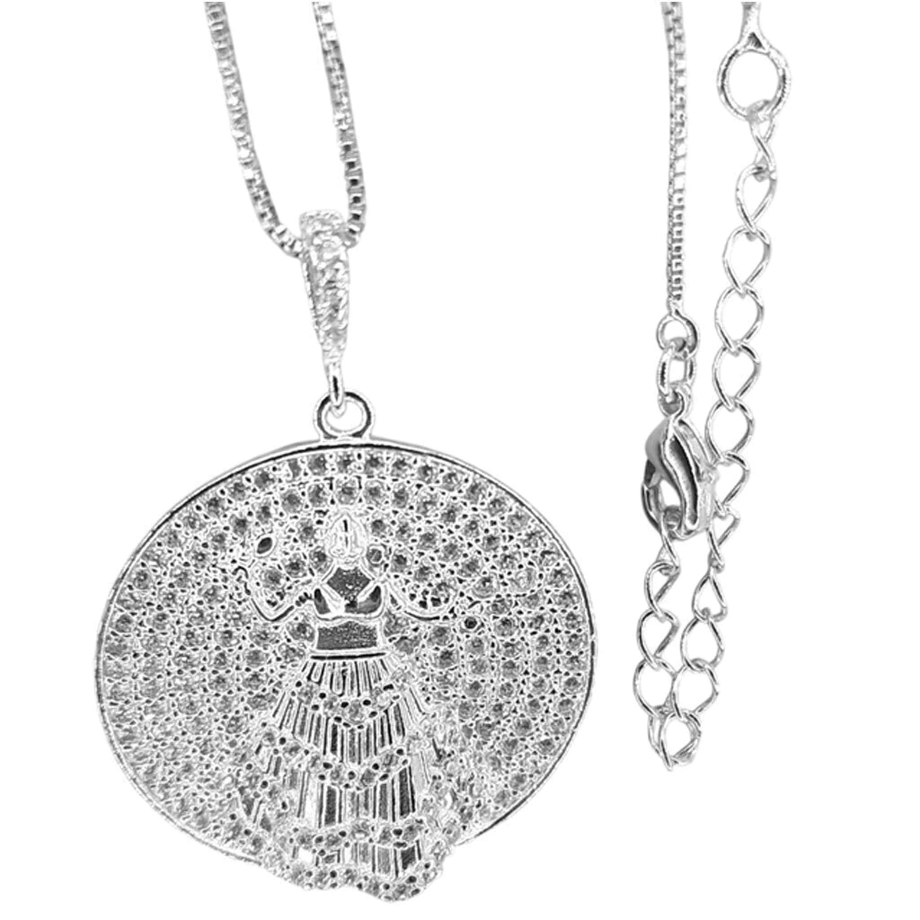 Descrição: Pingente Mandala Média Orixá Oxum cravejada com micro zircônias cristais + Corrente veneziana de 40/45cm com extensor. Disponível em banho de Ouro 18k e Prata 925.