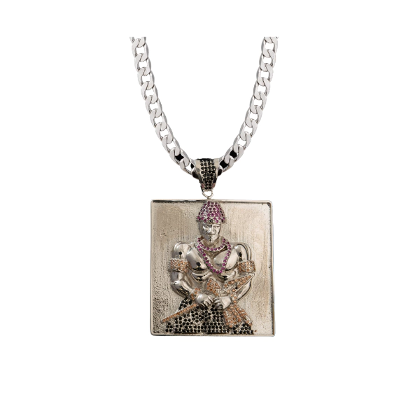 Descrição: Medalha Orixá Exu cravejado com micro zircônias, disponível em banho de Prata. Corrente não inclusa!