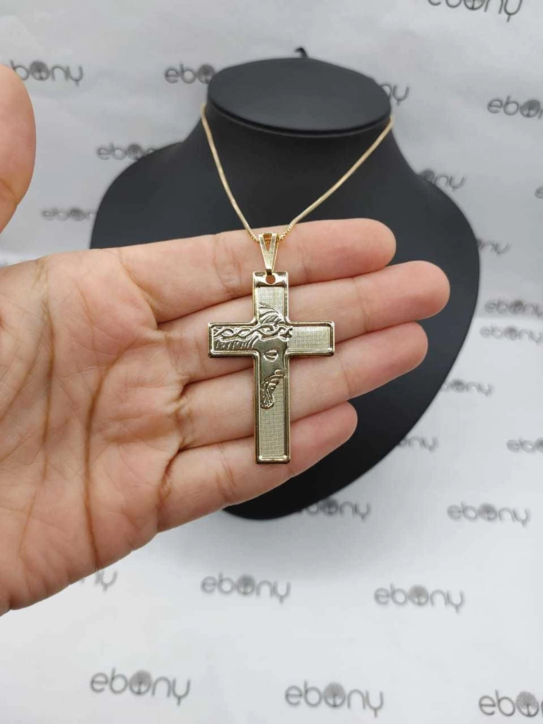 PINGENTE CRUZ FACE DE CRISTO BANHADO A OURO 18K