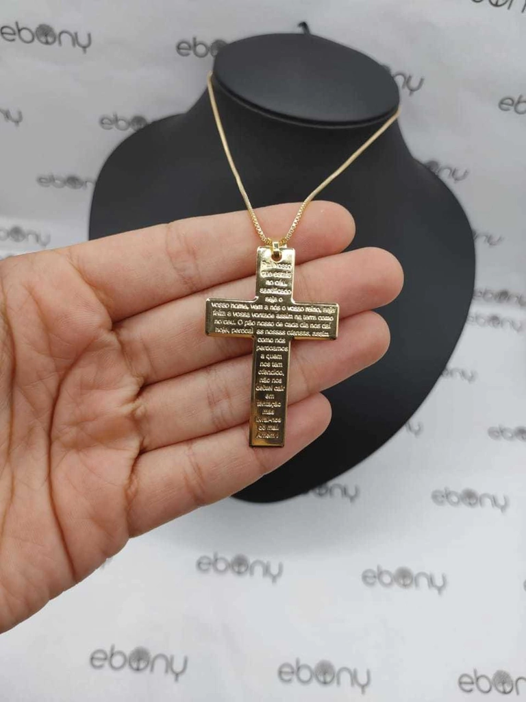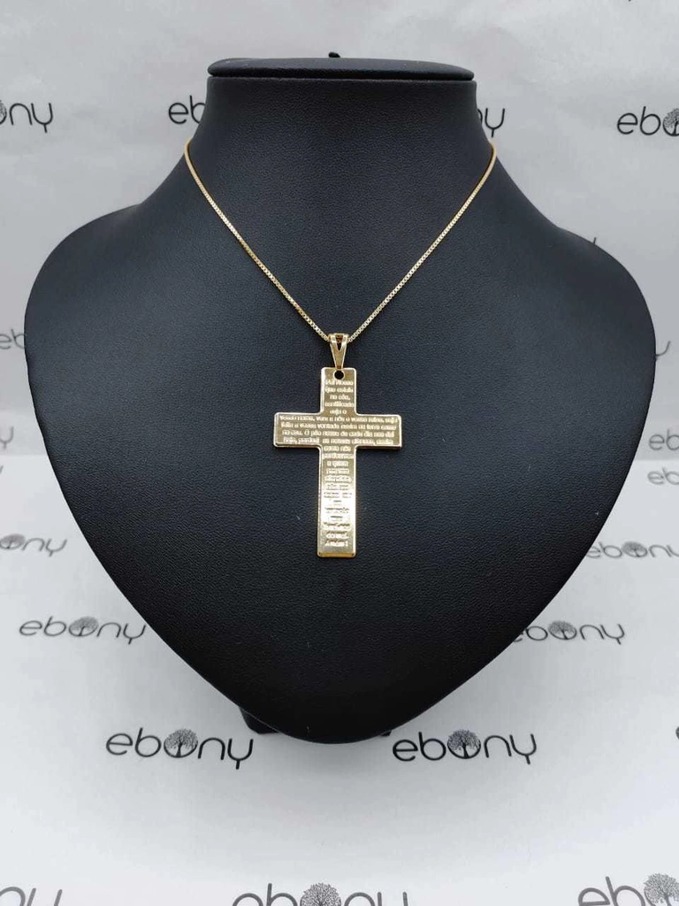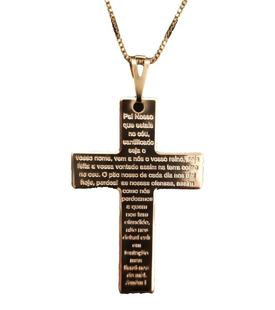 PINGENTE CRUZ PAI NOSSO BANHADO A OURO 18K