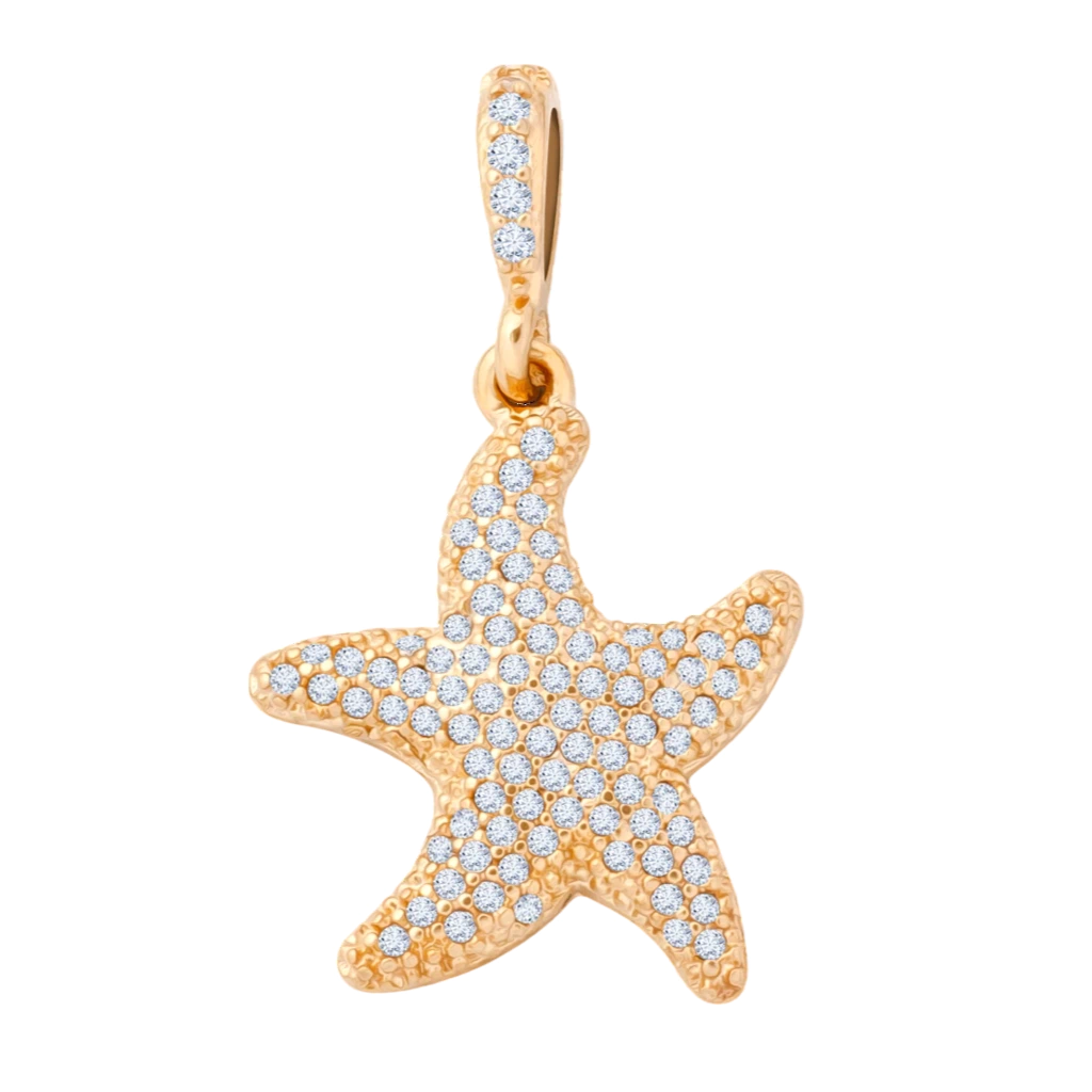 Descrição: Pingente Estrela do Mar cravejado com micro zircônias, disponível em banho de Ouro 18k ou Prata. Corrente não inclusa!