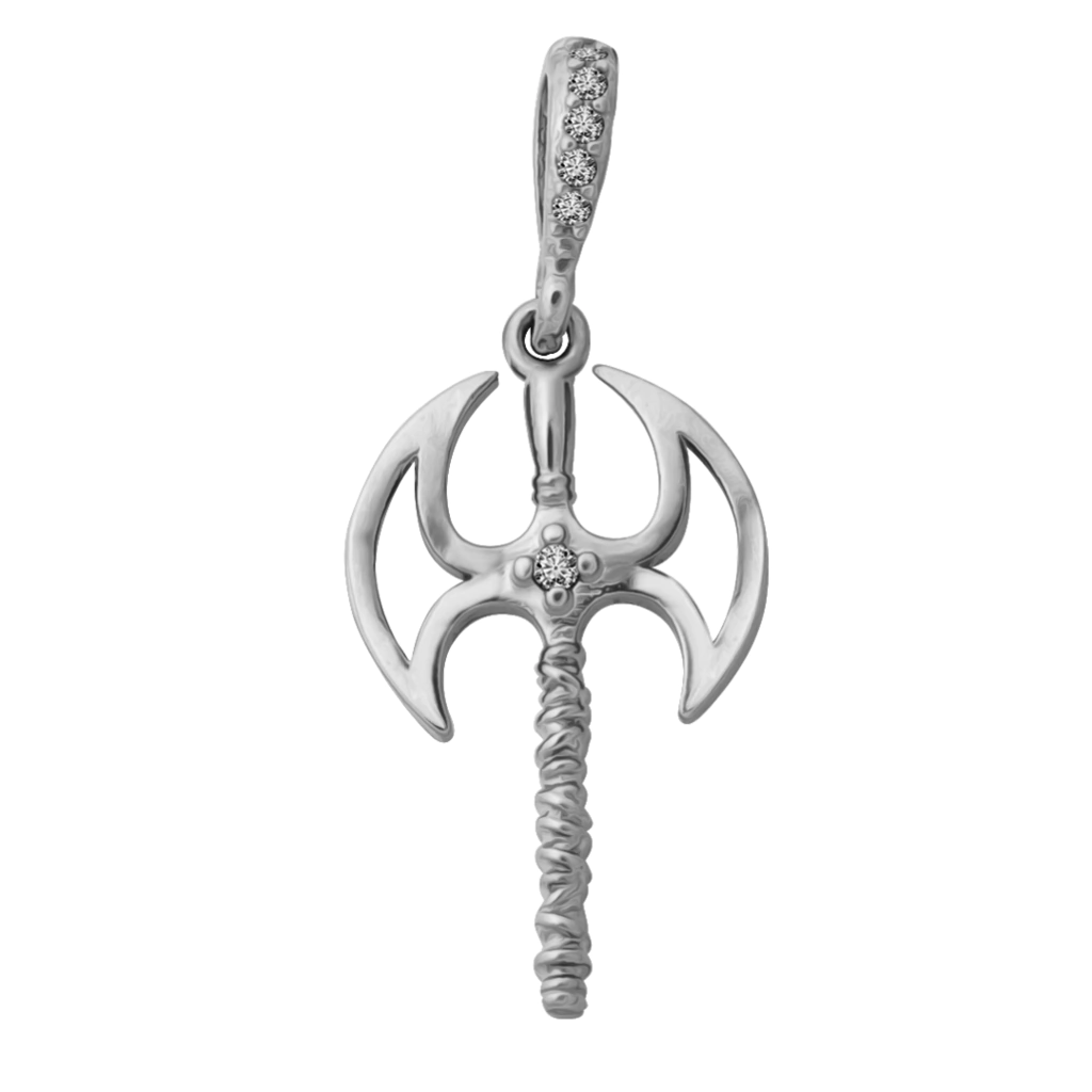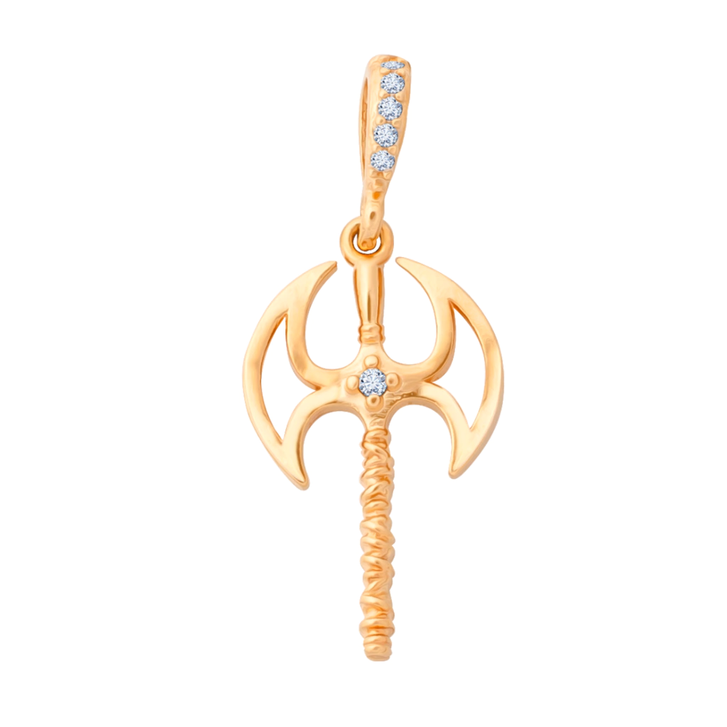 Descrição: Pingente Machado de Xangô cravejado com micro zircônias, disponível em banho de Ouro 18k ou Prata.