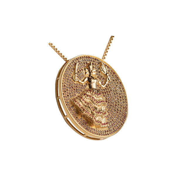 PINGENTE MANDALA GRANDE IANSÃ BANHADA A OURO 18K C/ MICRO ZIRCÔNIAS GRANADA + CORRENTE VENEZIANA 60CM