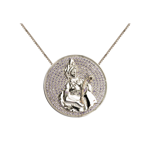 Descrição: Pingente Mandala Grande Nanã cravejada com micro zircônias + Corrente veneziana de 60cm. Disponível em banho de Prata 925.