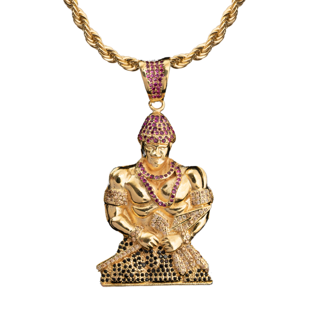 Descrição: Pingente Orixá Exu cravejado com micro zircônias, disponível em banho de Ouro 18k.